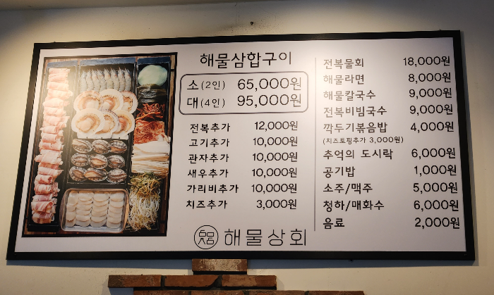 전복, 고기, 관자, 새우, 가리비, 치즈까지