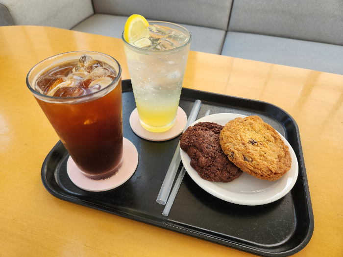 커피와 먹을 쿠키 두개를 주문했습니다